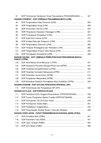 92. SOP Pengendalian Mutu Dokumen (LPM) …………………………………….. 350