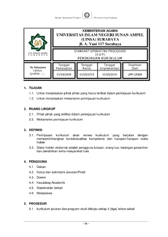 Standar Operasional Prosedur UIN Sunan Ampel Surabaya