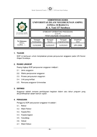 SOP ini bertujuan untuk menjelaskan proses penyusunan anggaran pada UIN Sunan