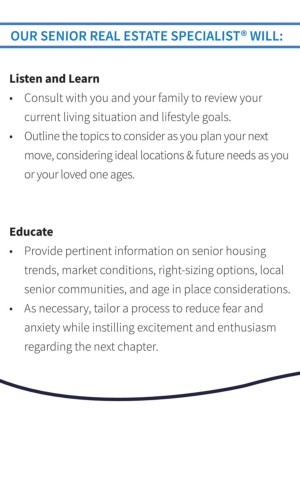 OUR SENIOR REAL ESTATE SPECIALIST® WILL: