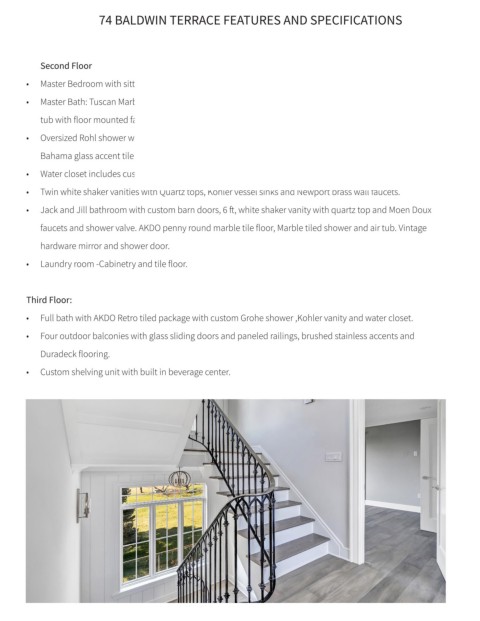 74 BALDWIN TERRACE FEATURES AND SPECIFICATIONS