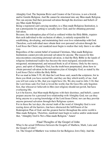 that, “Almighty God Is Not a Man-made Religion.” Amen!