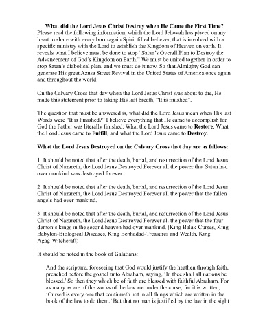 the Lord Jesus came to Fulfill, and what the Lord Jesus came to Destroy.