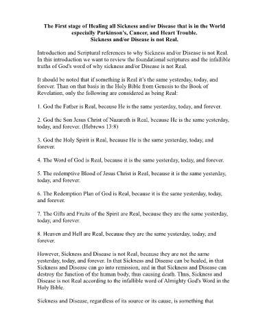 Introduction and Scriptural references to why Sickness and/or Disease is not Real.