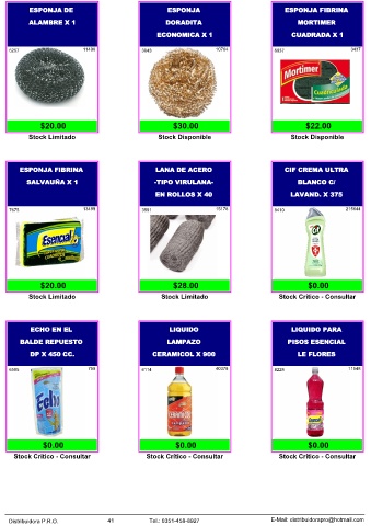 Distribuidora P.R.O. 41 Tel.: 0351-458-8927 E-Mail: distribuidorapro@hotmail.com