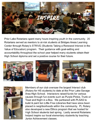 Prior Lake Rotarians spent many hours inspiring youth in the community. 20