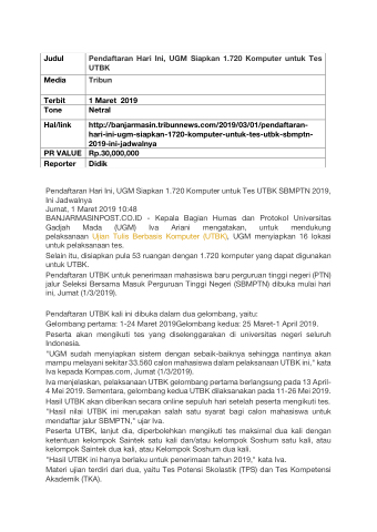 http://banjarmasin.tribunnews.com/2019/03/01/pendaftaran- hari-ini-ugm-siapkan-1720-komputer-untuk-tes-utbk-sbmptn- 2019-ini-jadwalnya