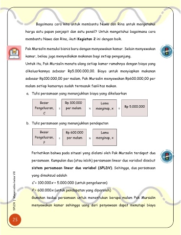 SPLDV |  Matematika kelas VIII   C = 100.000x + 5.000.000 (untuk pengeluaran)