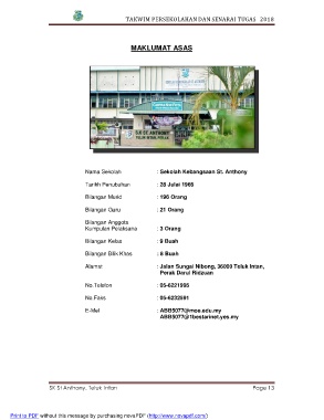 Nama Sekolah : Sekolah Kebangsaan St. Anthony