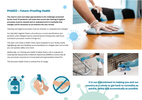 Additionally, our Training and Health & Safety Teams will re-evaluate all cleaning Risk Assessments & Method Statements (RAMS) to ensure that all new processes required are incorporated and appropriately trained for.