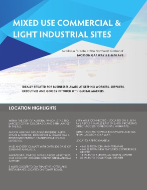 MAJOR AURORA INDUSTRIES INCLUDE: AERO- DIRECT ACCESS TO PENA BOULEVARD AND DIA