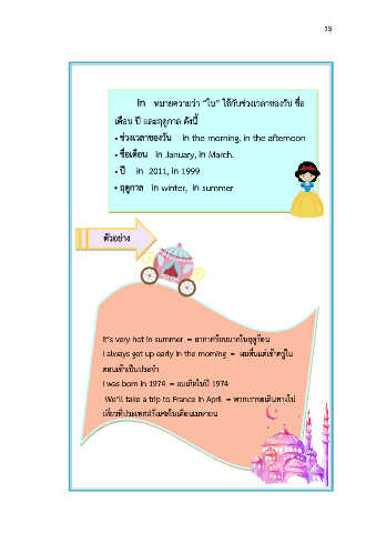• ช่วงเวลาของวัน in the morning, in the afternoon
