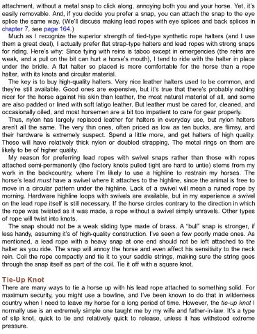 attachment, without a metal snap to click along, annoying both you and your horse. Yet, it’s