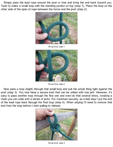 post (step 3). You now have a secure knot that can be untied with one jerk. However, it’s