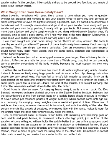 saddle and your own body, packing it neatly with proper knots. But unless you weigh little