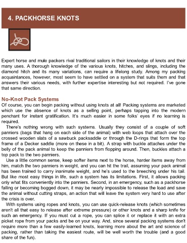 diamond hitch and its many variations, can require a lifelong study. Among my packing