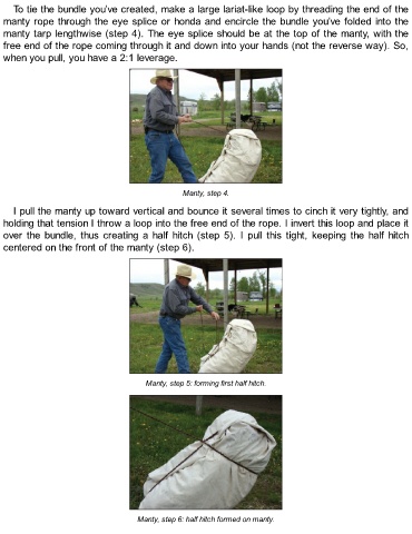 manty tarp lengthwise (step 4). The eye splice should be at the top of the manty, with the