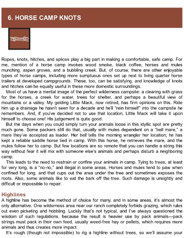 me, mention of a horse camp invokes wood smoke, black coffee, horses and mules