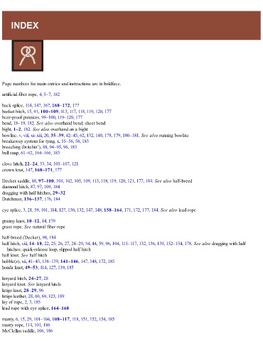 half hitch, viii, 14–18, 22, 25, 26, 27, 28–29, 34, 44, 59, 96, 104, 115–117, 132, 136, 139, 152–154, 178. See also dragging with half