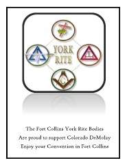 The Fort Collins York Rite Bodies Are proud to support Colorado DeMolay Enjoy your Convention in Fort Collins