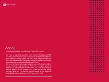 2. Comparison of the two Glass+ACP tests: Tests 1 and 2 • Fire load at ground floor level in Test 1 (201MJ/m2) was lesser compared to Test 2 (610 MJ/m2). However, maximum temperature during