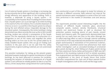 ABSTRACT Use of external façade systems in buildings is increasing day was constructed as part of this project to study fire behavior at