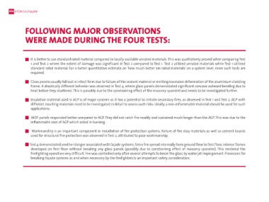 Four full-scale fire tests were conducted to study different façade materials FOLLOWING MAJOR OBSERVATIONS