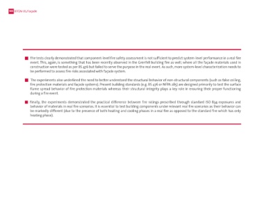 • The tests clearly demonstrated that component-level fire safety assessment is not sufficient to predict system-level performance in a real fire