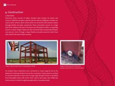 Structural frame consists of Indian standard steel sections for beams and 18×25 mm at a spacing of 300 mm center to center through deck sheet onto the sheet for achieving composite action.