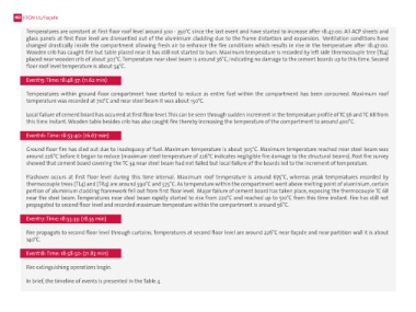 Flashover occurs at first floor level during this time interval. Maximum roof temperature is around 675°C, whereas peak temperatures recorded by