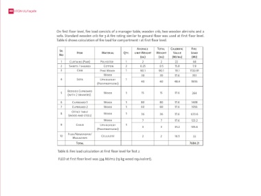 Table 5 shows fire load calculations for ground floor 8 Coffee table Wood 1 25 25 17.6 440 (with 2 drawers)