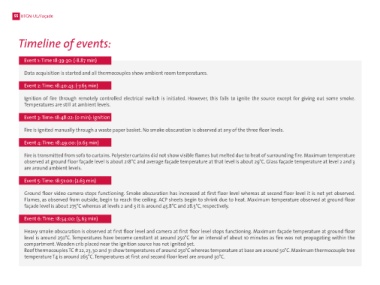Timeline of events: One ACP sheet of ground floor façade fails enhancing the ventilation conditions within the compartment. Wooden crib placed in the middle of the