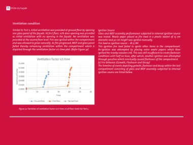 depicted through the ventilation factor v/s time plot. (Refer Figure 32) Re-ignition was attempted by placing extra waste papers which then Fire load in form of waste paper placed in small plastic basket near smaller wooden crib is ignited manually. Fire source is placed in proximity to the glass