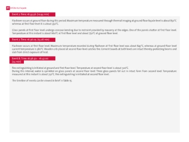 Flashover occurs at ground floor during this period. Maximum temperature measured through thermal imaging at ground floor façade level is about 850°C