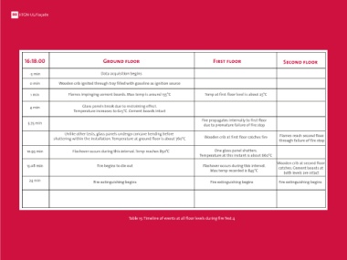Table 15: Timeline of events at all floor levels during fire Test 4