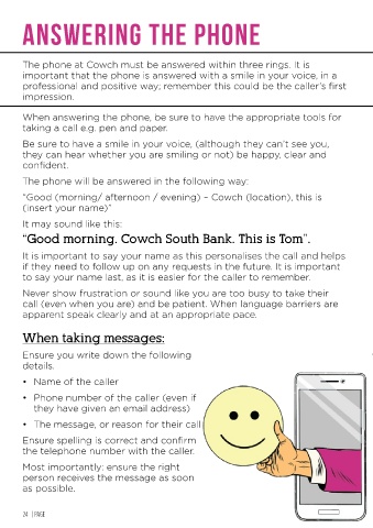 “Good (morning/ afternoon / evening) – Cowch (location), this is