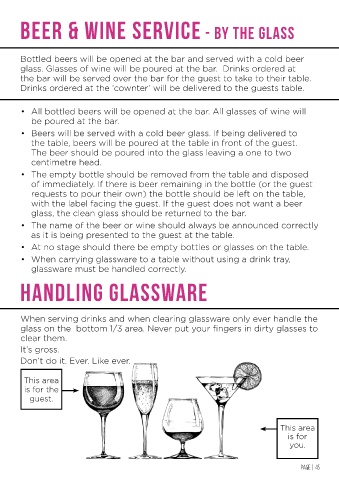 When serving drinks and when clearing glassware only ever handle the