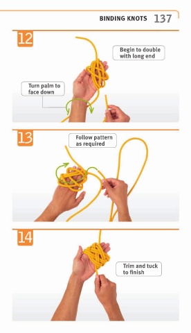 BINDING KNOTS 137 Begin to double with long end Turn palm to face down Follow pattern as required Trim and tuck to finish