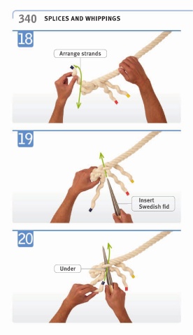 340 SPLICES AND WHIPPINGS Arrange strands Insert Swedish fid Under
