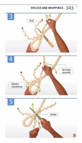 SPLICES AND WHIPPINGS 343 Pull Arrange strands Rotate clockwise Under