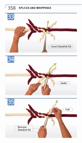358 SPLICES AND WHIPPINGS Insert Swedish fid Under Pull Remove Swedish fid
