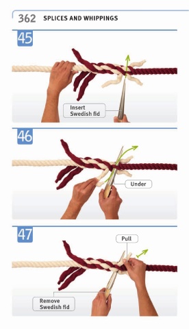 362 SPLICES AND WHIPPINGS Insert Swedish fid Under Pull Remove Swedish fid
