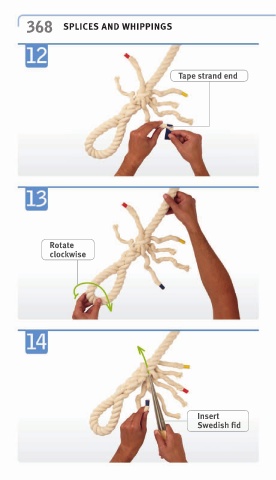 368 SPLICES AND WHIPPINGS Tape strand end Rotate clockwise Insert Swedish fid
