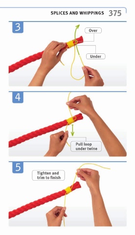 SPLICES AND WHIPPINGS 375 Over Under Pull loop under twine Tighten and trim to finish