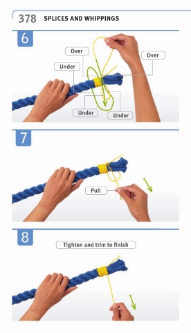 378 SPLICES AND WHIPPINGS Over Over Under Under Under Pull Tighten and trim to finish
