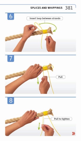 SPLICES AND WHIPPINGS 381 Insert loop between strands Pull Pull to tighten