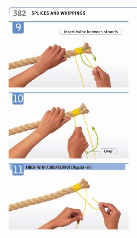 382 SPLICES AND WHIPPINGS Insert twine between strands Over FINISH WITH A SQUARE KNOT (»pp.85–86)