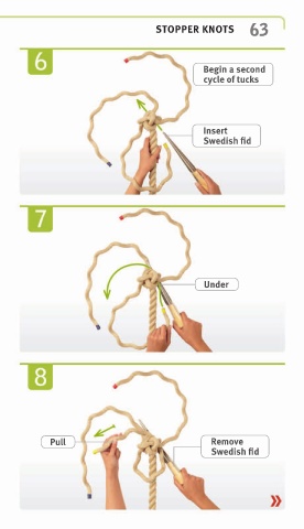STOPPER KNOTS 63 Begin a second cycle of tucks Insert Swedish fid Under Pull Remove Swedish fid