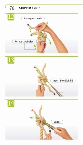 76 STOPPER KNOTS Arrange strands Rotate clockwise Insert Swedish fid Under