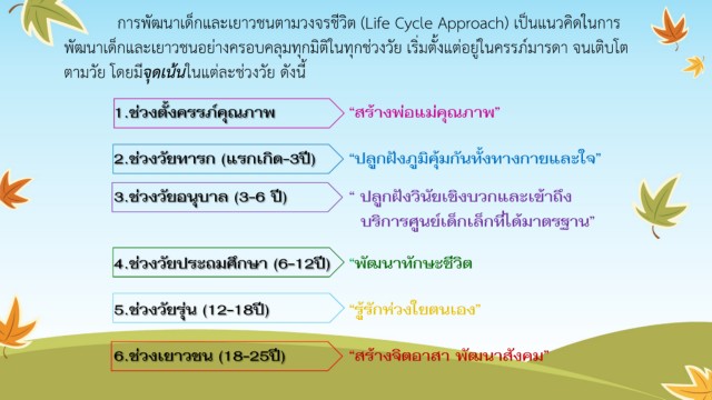 การพัฒนาเด็กและเยาวชนตามวงจรชีวิต (Life Cycle Approach) เป็นแนวคิดในการ